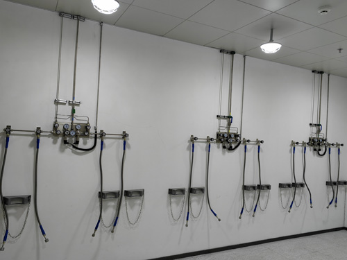 2.4NN2管理線運用OD3/8”(6.35mm)的輸送管道鋪設,0.5Mpa水壓下作量高達8M3/H,已經提供常規檢查用氣訴求,支線運用OD1/4”(6.35mm)的輸送管道鋪設。用焊接生產三通管件分清支路來對主設備通過供氧。